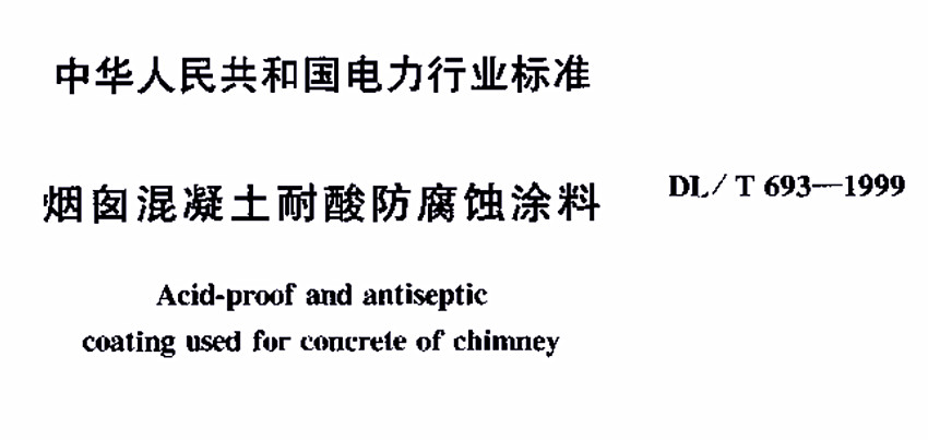 DL/T693-1999煙囪混凝土耐酸防腐蝕涂料標準中華人民共和國電力行業標準 DL/T693-1999煙囪混凝土耐酸防腐蝕涂料Acid-proof and antiseptic coating used for concrete of chimney 中華人民共和國國家經濟貿易委員會2000-02-24批準 2000-07-01實施 本標準規定了火力發電廠煙囪混凝土防腐蝕涂料的通用技術條件、試驗